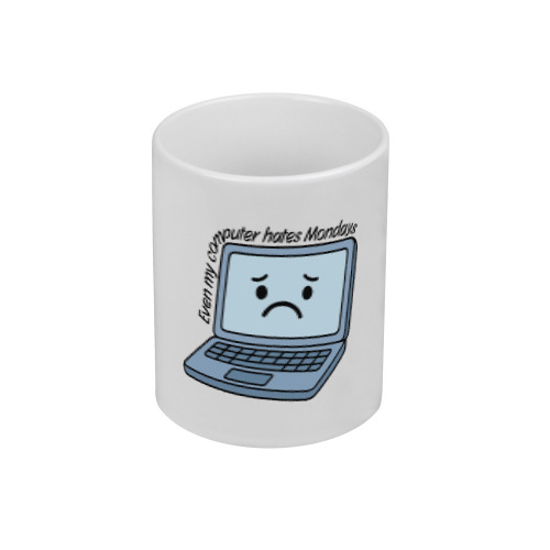 Кружка «Скелет за ноутбуком в горах бумаг»