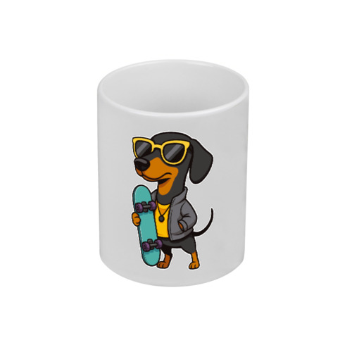 Кружка «Собака такса со скейтом, крутой пес, щенок в очках»