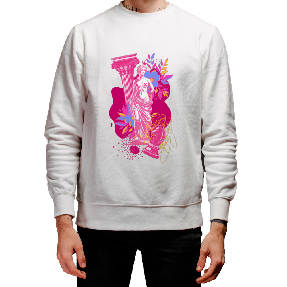 Мужской свитшот «Венера Милосская с шахматным конём в розовых тонах»