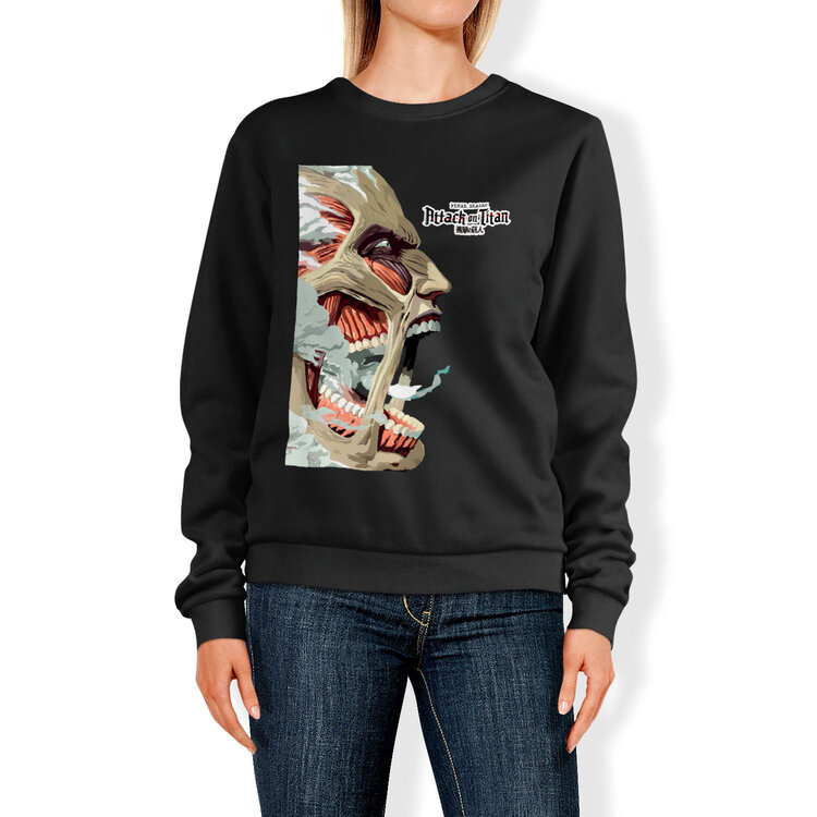 Женский свитшот «атака титанов, аниме, детские, титан, лицо»