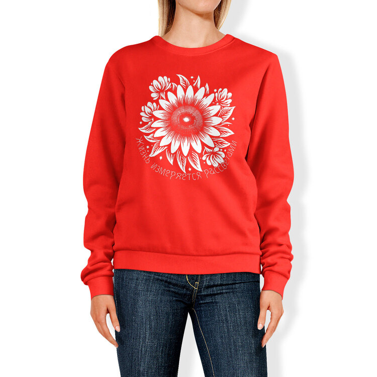 Женский свитшот «Жизнь измеряется рассветами - подсолнухи в цвету»