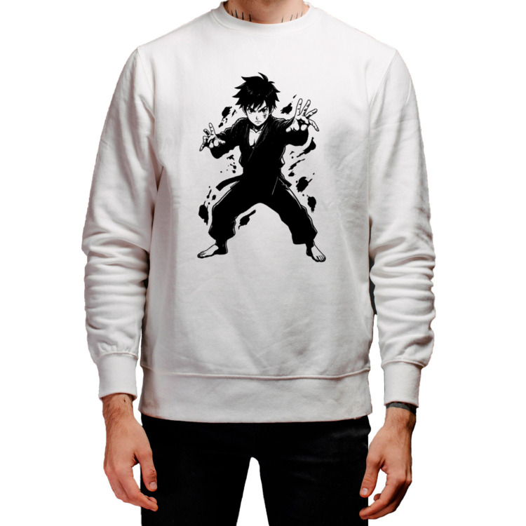 Мужской свитшот «Аниме-воин в стойке джиу-джитсу»