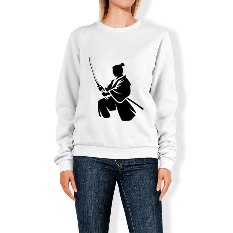 Женский свитшот «Черный силуэт самурая с катаной»