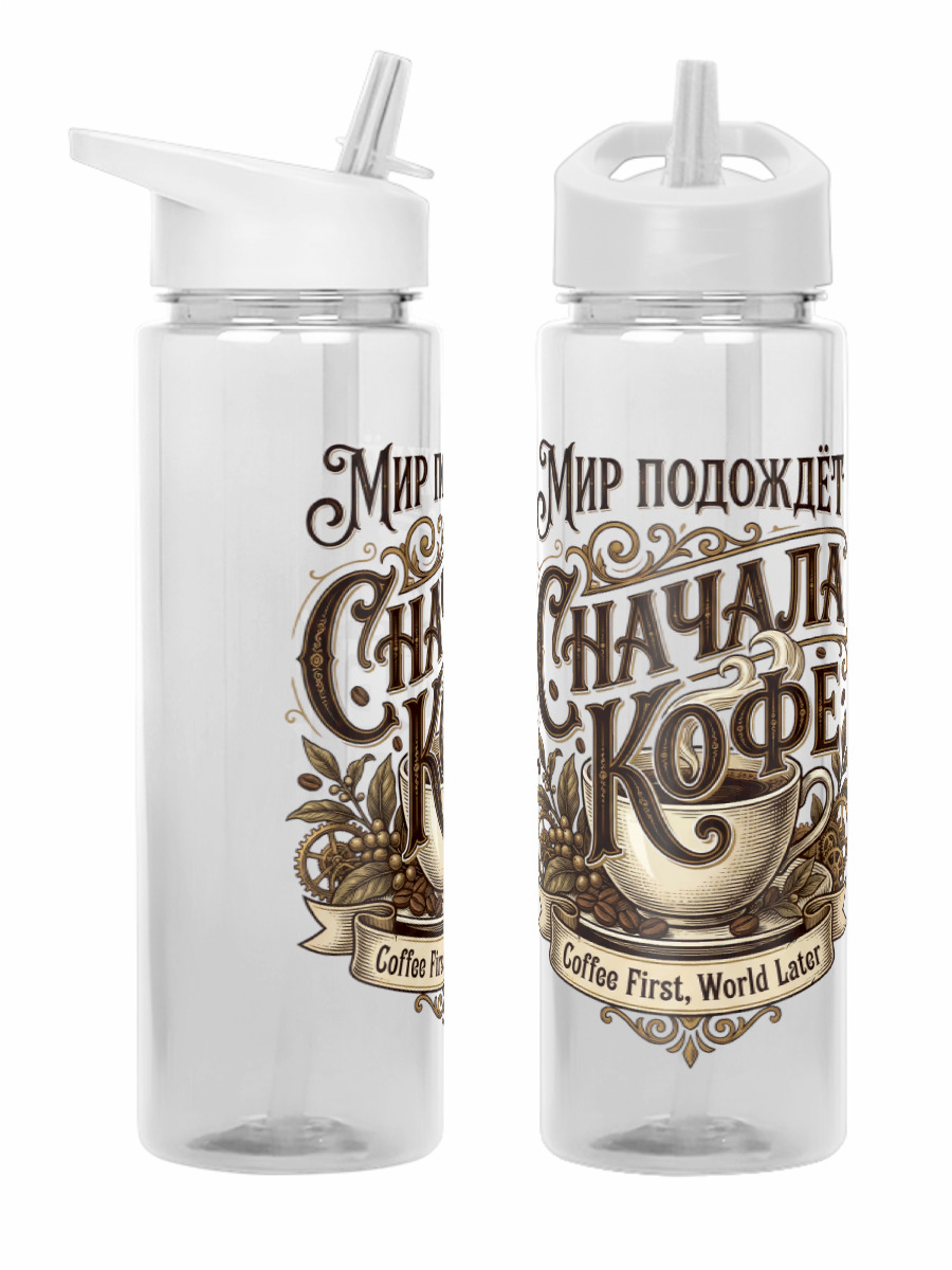 Бутылка спортивная «Мир подождёт сначала кофе»