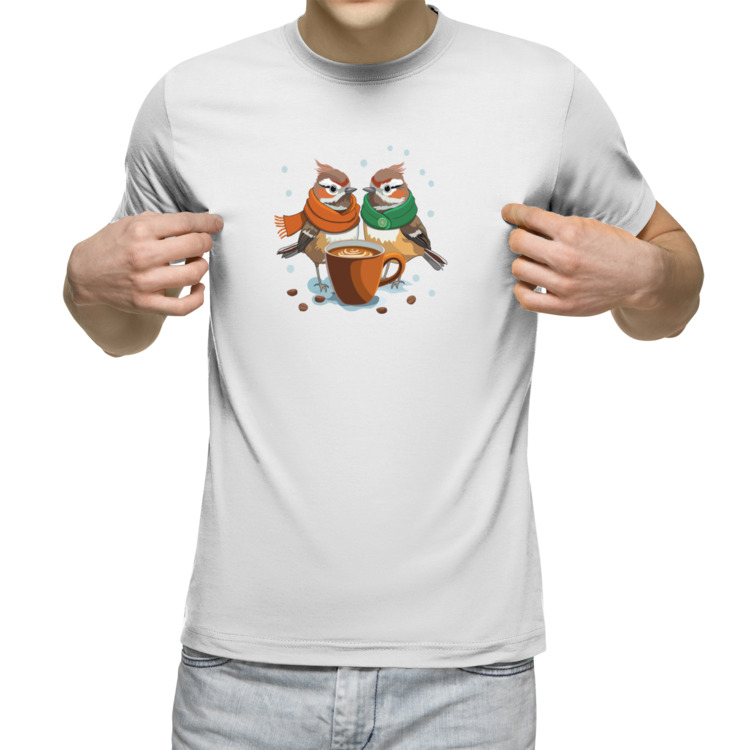 Мужская футболка «птицы и кофе, Новый год»
