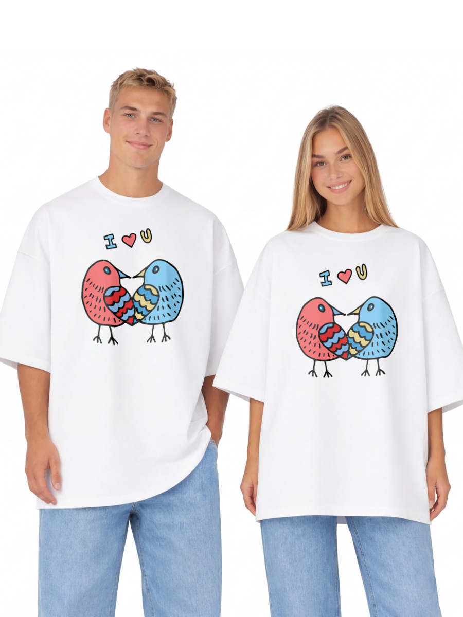 Футболка оверсайз «Влюбленные птички. I love you Я люблю тебя»
