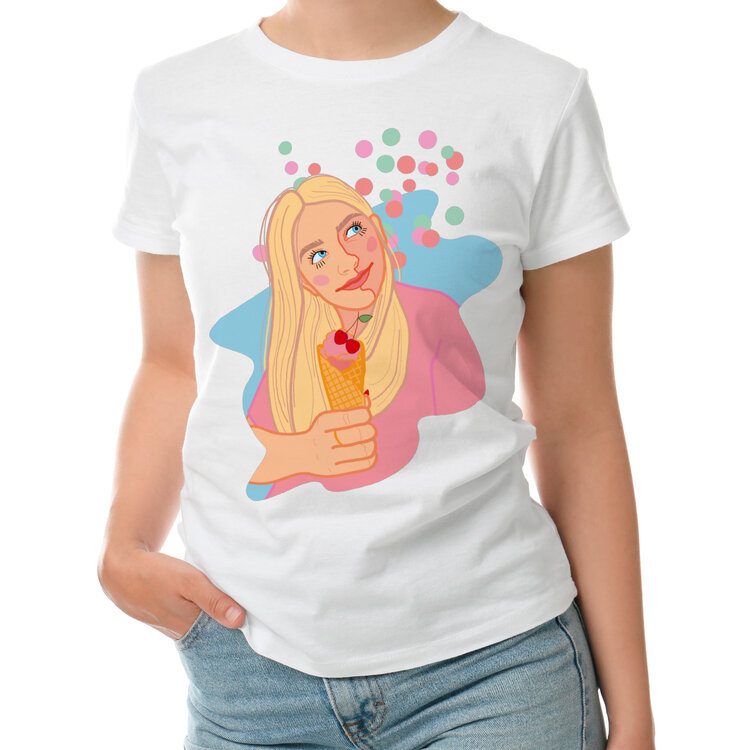 Футболка оверсайз «Милый цветной котик ест мороженое на полотенце»