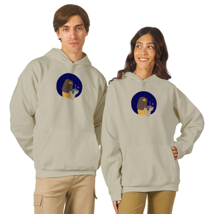 Худи оверсайз «Девушка вполоборота держит кратхонг на синем фоне»