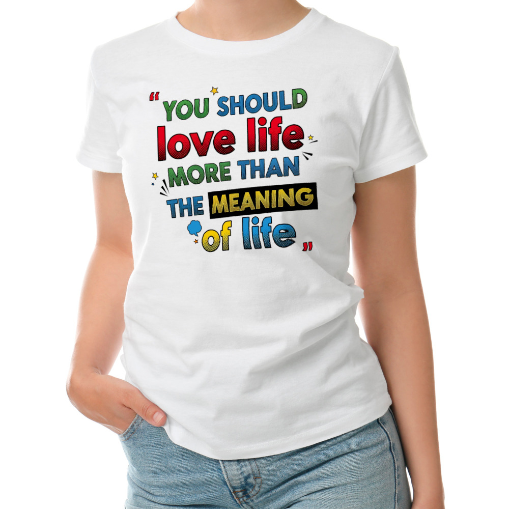Женская футболка «Текст Люблю жизнь больше, чем смысл жизни»