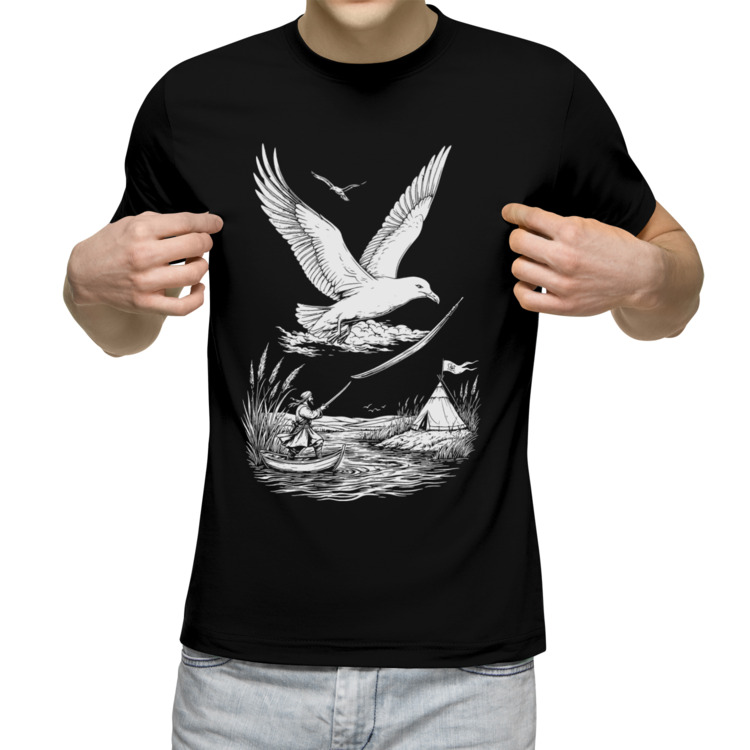Мужская футболка «Чайка над лодкой казака»