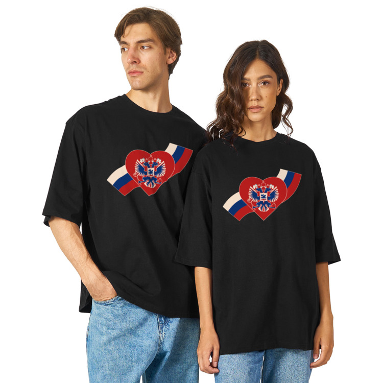 Футболка оверсайз «Сердце в расцветках флага России»