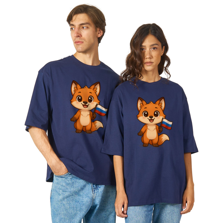 Футболка оверсайз «Лисенок с флагом России»