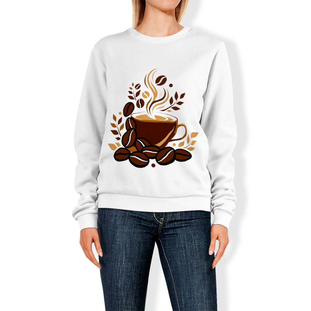 Женский свитшот «Кофейная чашка с ароматным кофе и зёрнами»