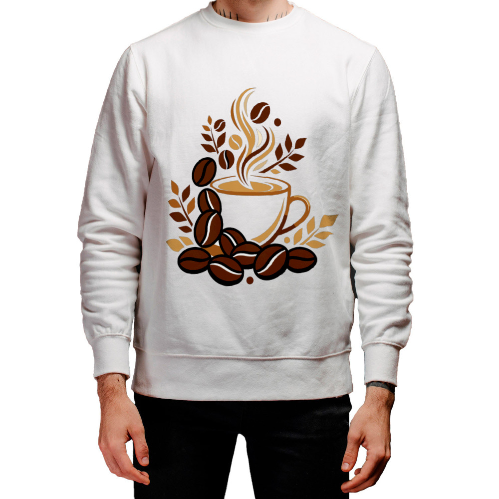 Мужской свитшот «Ароматная кофейная чашка с зёрнами и листьями»