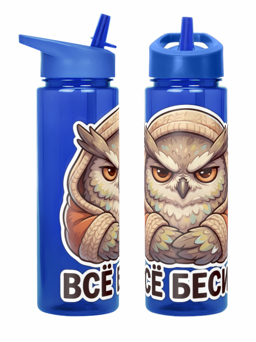 Бутылка для воды «Радужная сова в худи с чашкой»