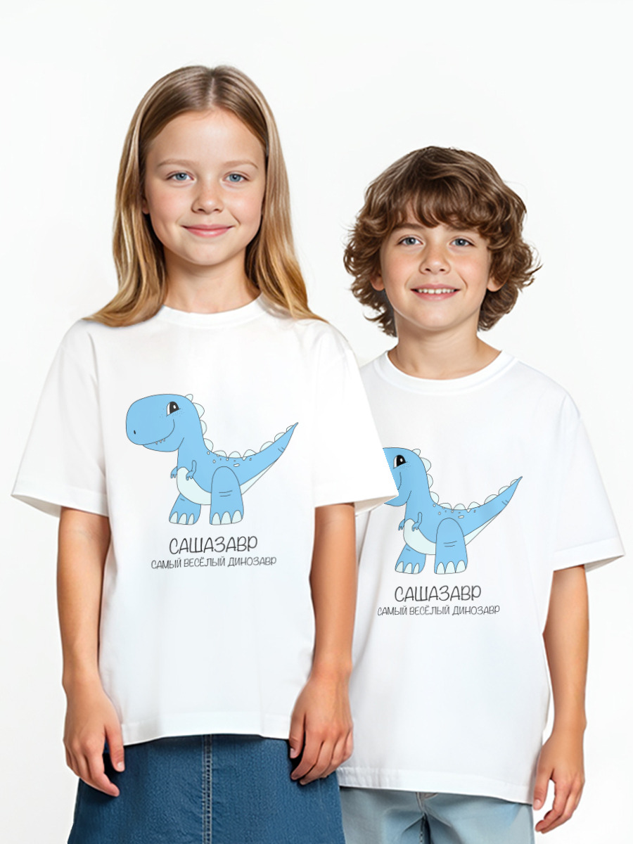 Детская оверсайз футболка «Сашазавр, самый веселый динозавр Саша»