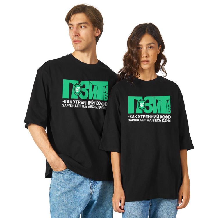 Футболка оверсайз «Кофе на позитиве с утра»