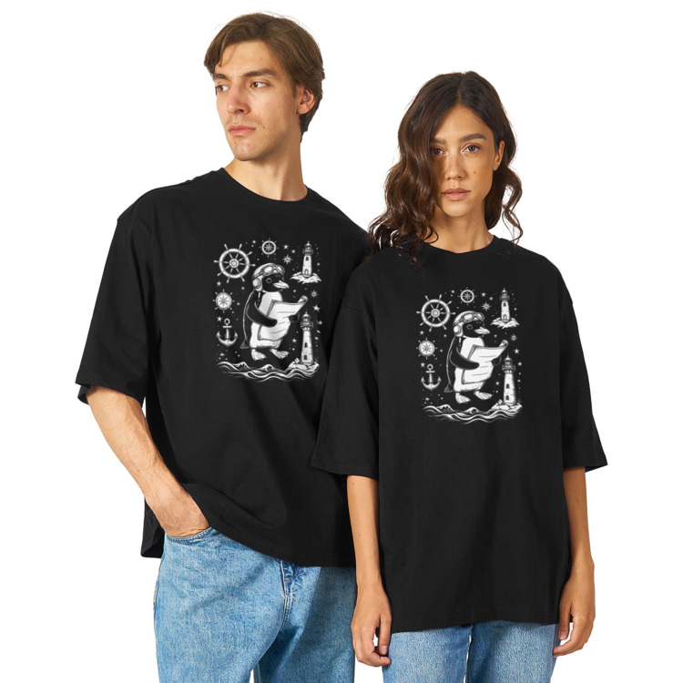 Футболка оверсайз «Пингвин-навигатор с картой»