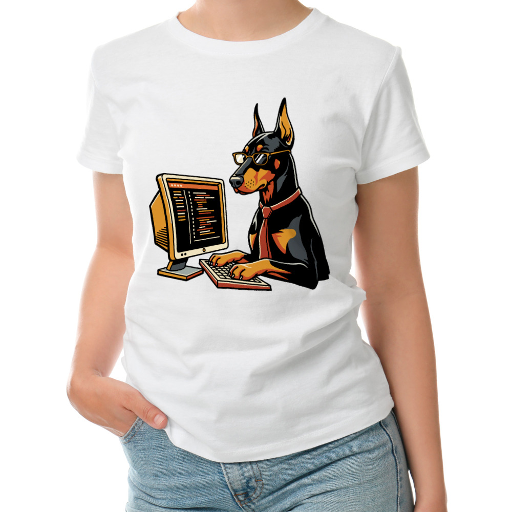 Женская футболка «Доберман программист»