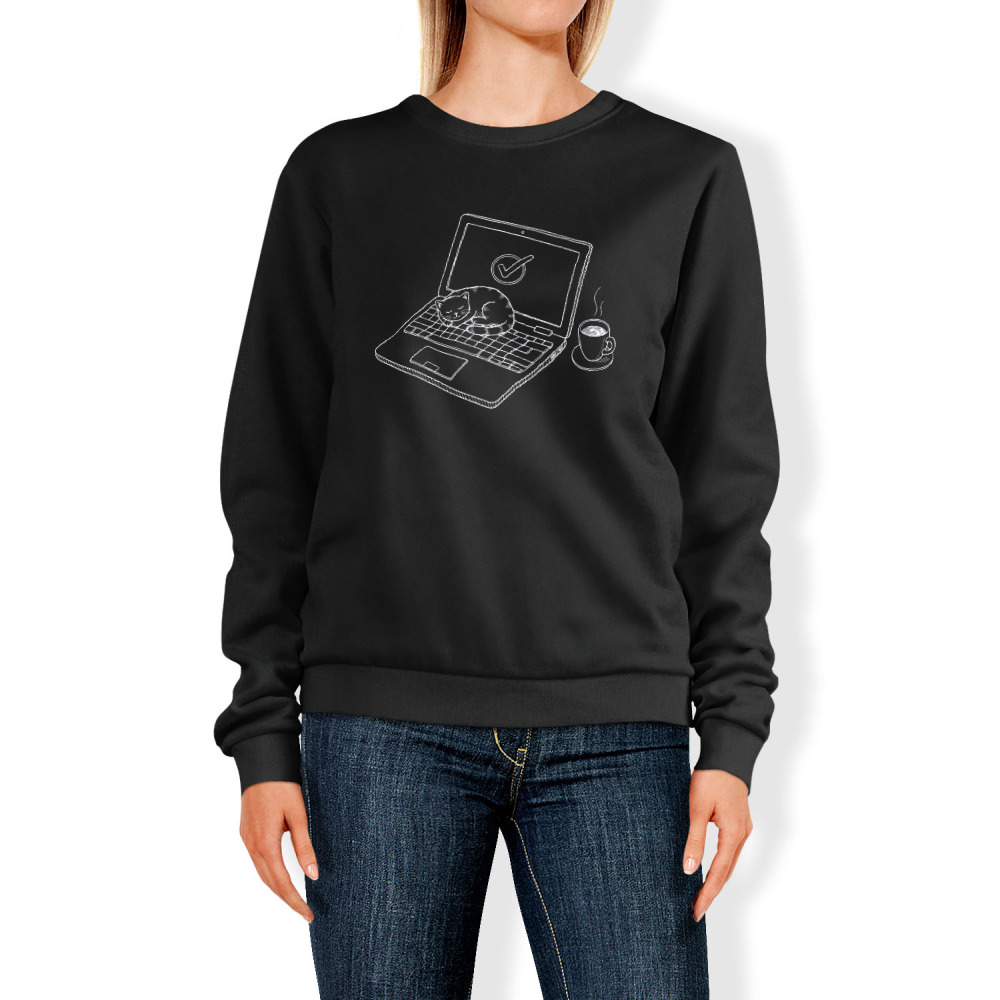 Женский свитшот «Кошачий апгрейд: Тепло и кофе»