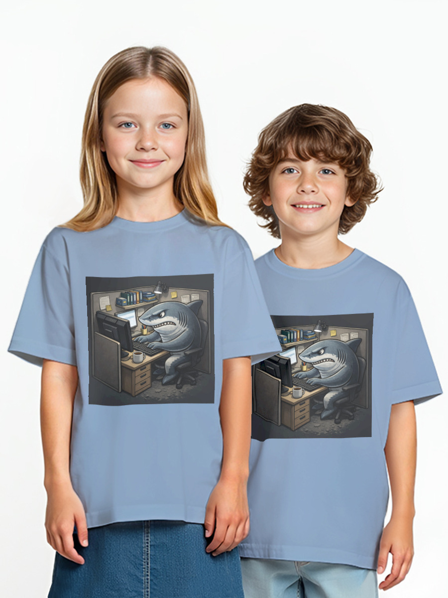 Детская оверсайз футболка «Офисная акула за компьютером»