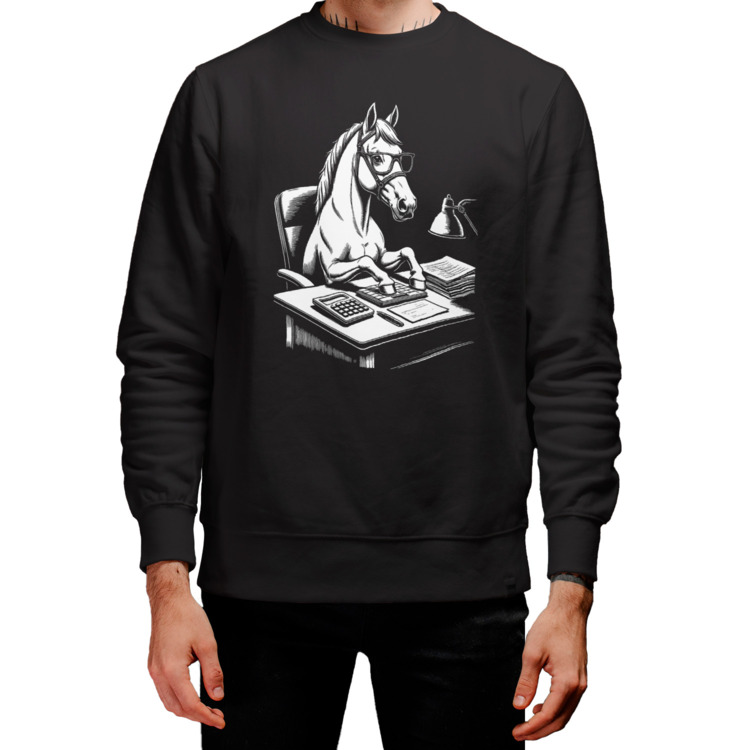 Мужской свитшот «Лошадь за бухгалтерским столом»