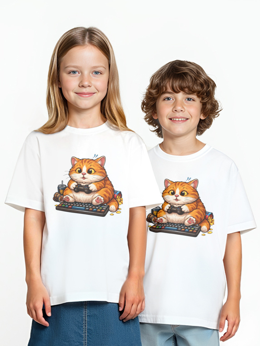 Детская оверсайз футболка «Кот сидит на клавиатуре»