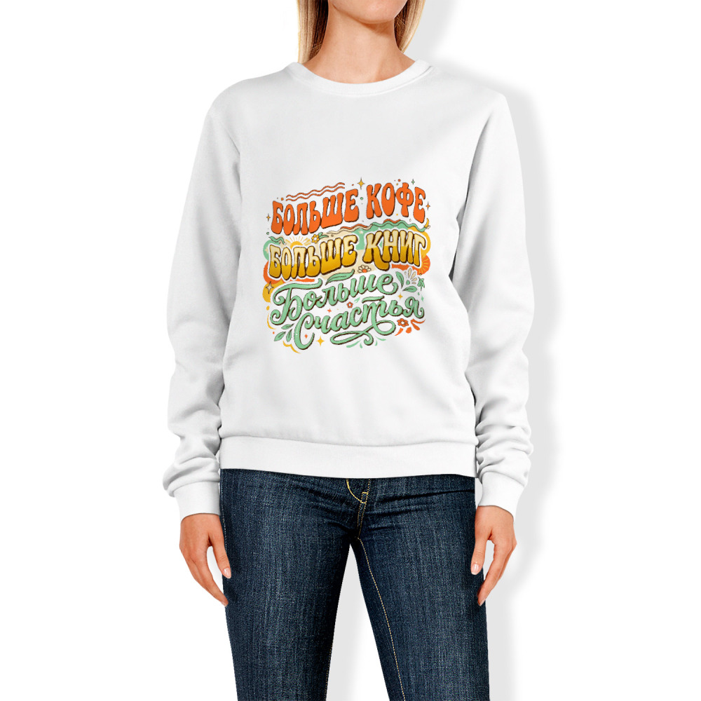 Женский свитшот «больше кофе, больше книг, больше счастья»