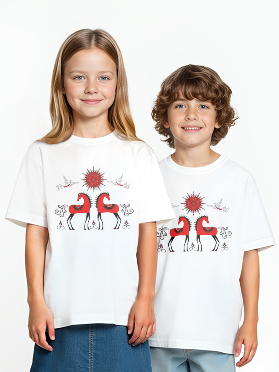Детская футболка «Красная лошадь как оберег - этнический узор»