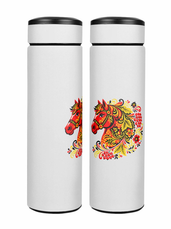 Термос «Русская хохлома-красная лошадь в русском узоре»