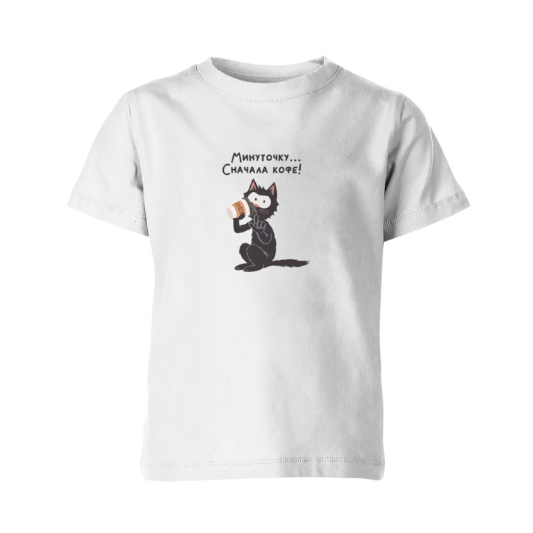 Детская футболка «Кот-кофеман, стаканчик кофе»
