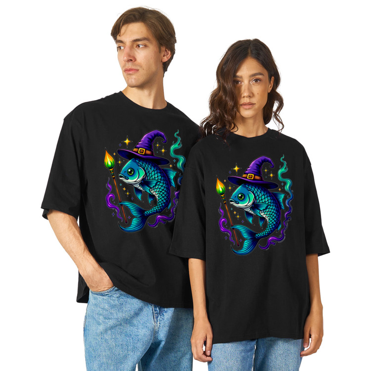 Футболка оверсайз «Рыба-ведьма с посохом»