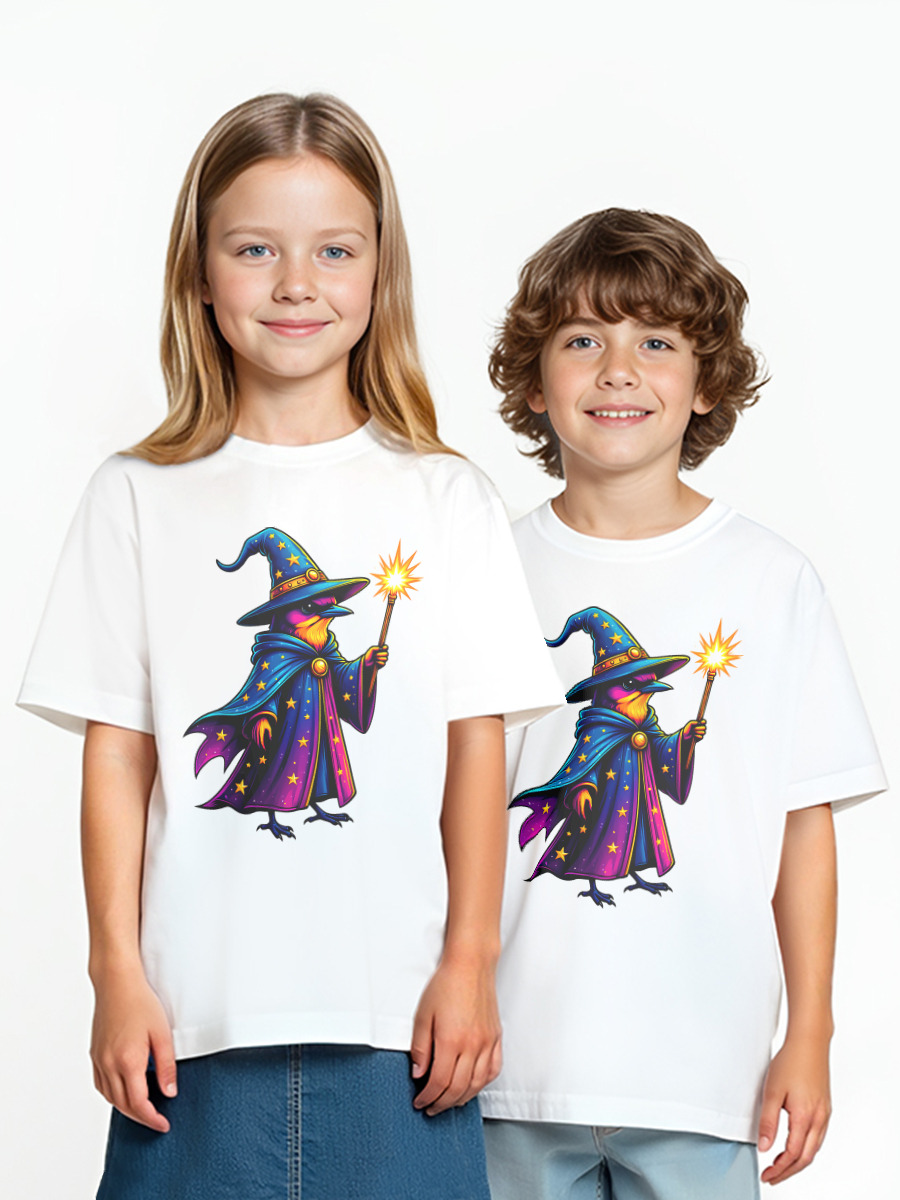 Детская оверсайз футболка «Волшебный воробей с посохом»