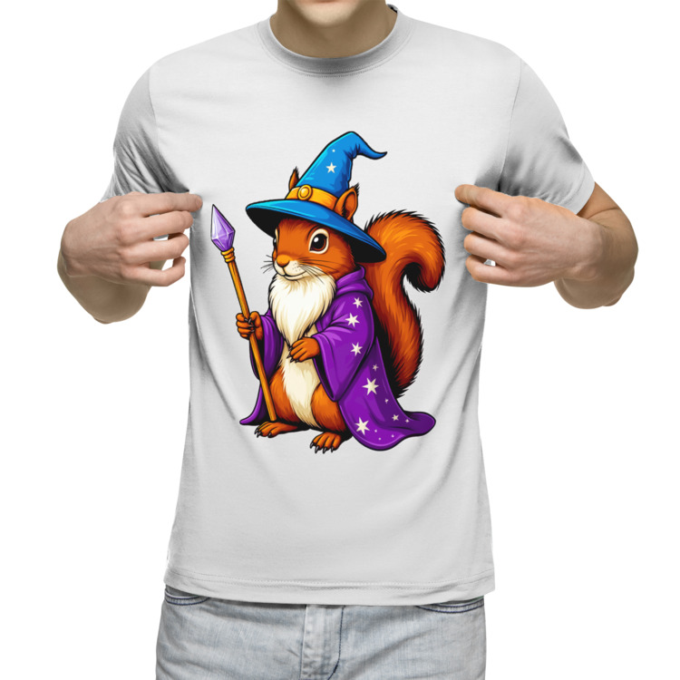 Мужская футболка «Белка-волшебник с посохом»
