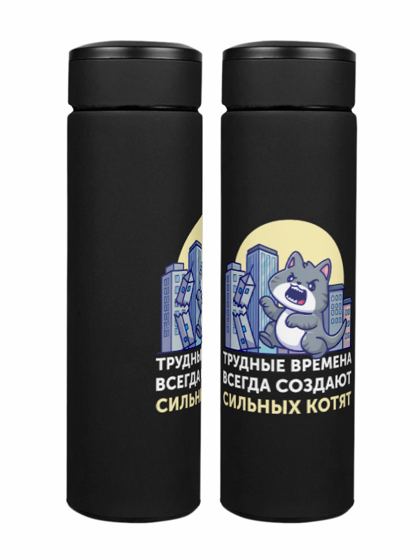 Термос «Трудные времена создают сильных котят, котзилла, злой кот»