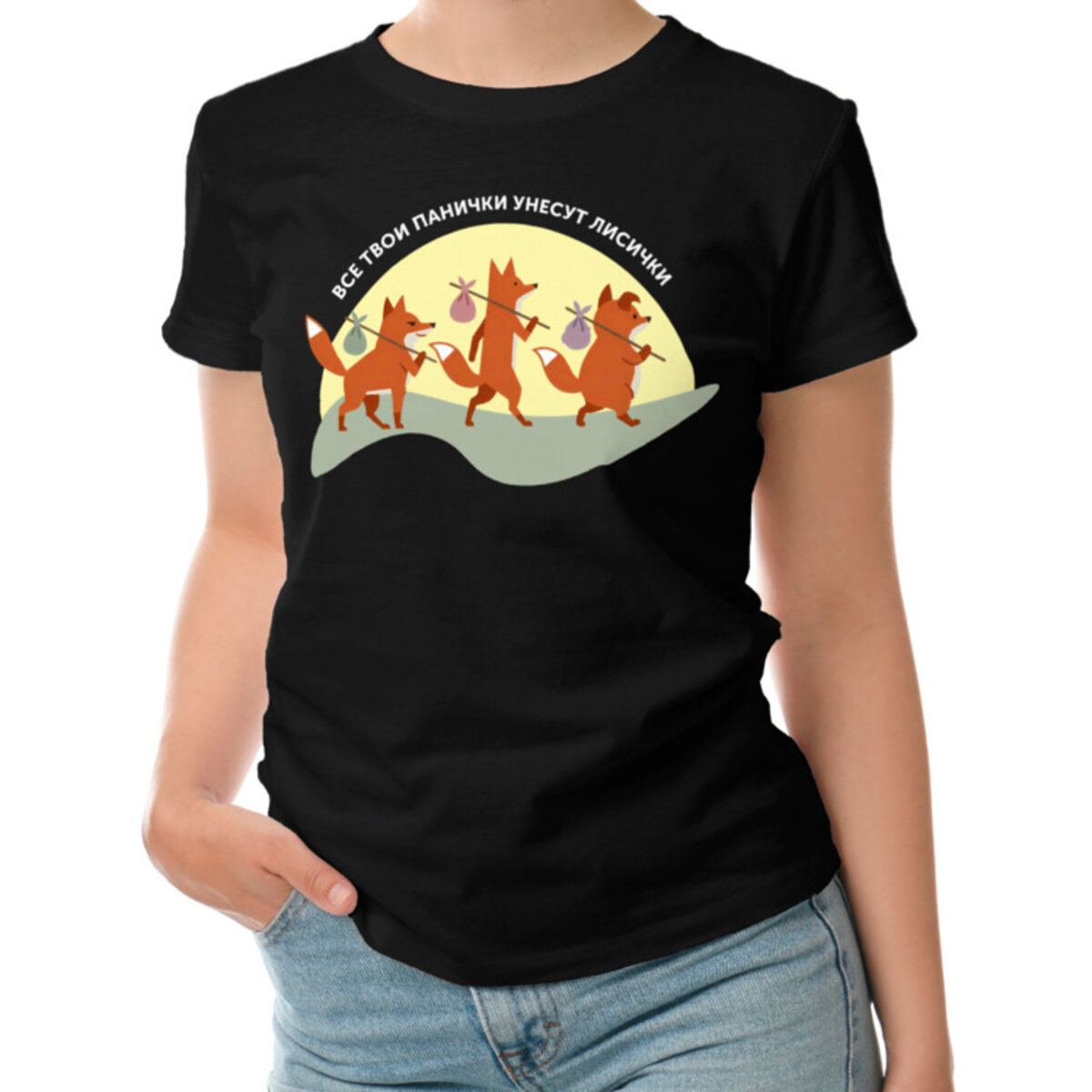 Женская футболка «Паническая атака, без паники, лиса, мемная»