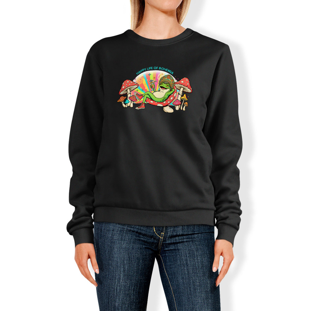 Женский свитшот «Царевна лягушка, мухоморы, хиппи, кеды»