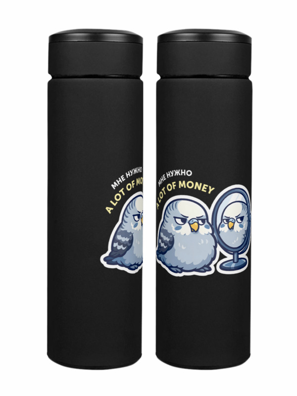Термос «Попугай мем, money, коллеге, про деньги, мотивация»