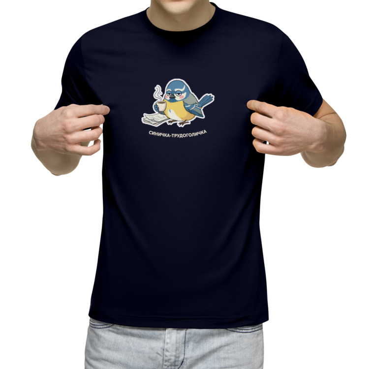 Мужская футболка «Синичка, трудоголичка, трудоголик, птичка»
