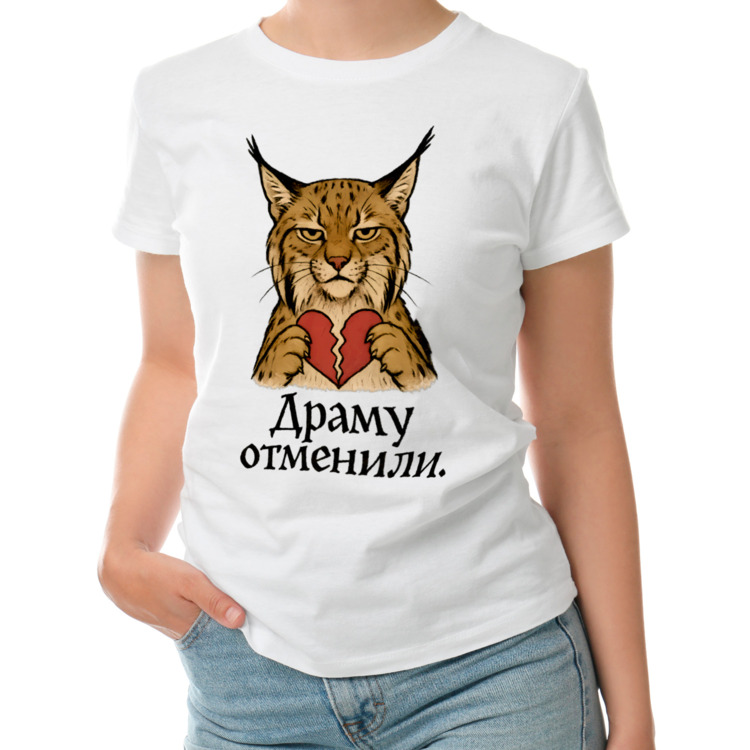 Женская футболка «Драму отменили - рысь разрывает сердечко»