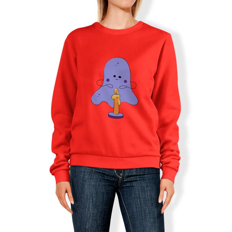 Женский свитшот «Милое привидение на Хэллоуин со свечой»
