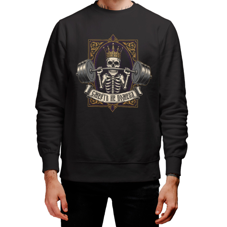 Мужской свитшот «Скелет со штангой - Смерть не помеха»