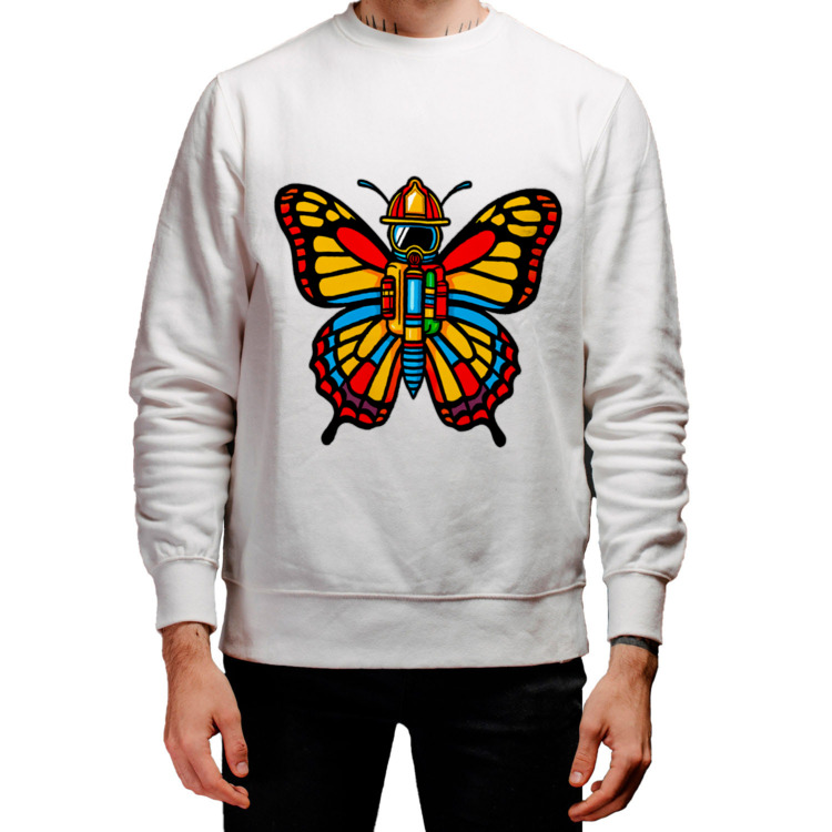 Мужской свитшот «Бабочка в пожарной каске»