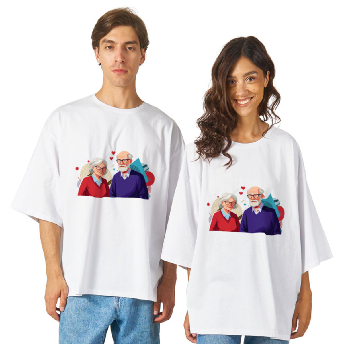 Футболка оверсайз «Пожилая пара с улыбками, сердечками»