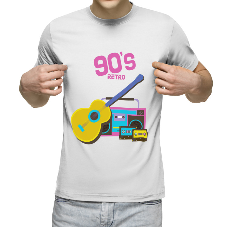 Мужская футболка «Ретро-дух 90-х: гитара, магнитофон, кассеты»