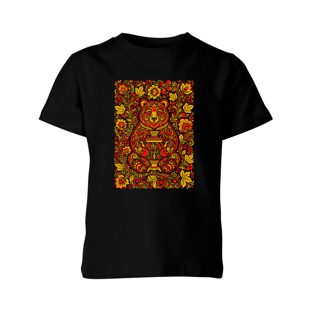 Детская футболка «Русская хохлома:Медведь с самоваром(узор)»