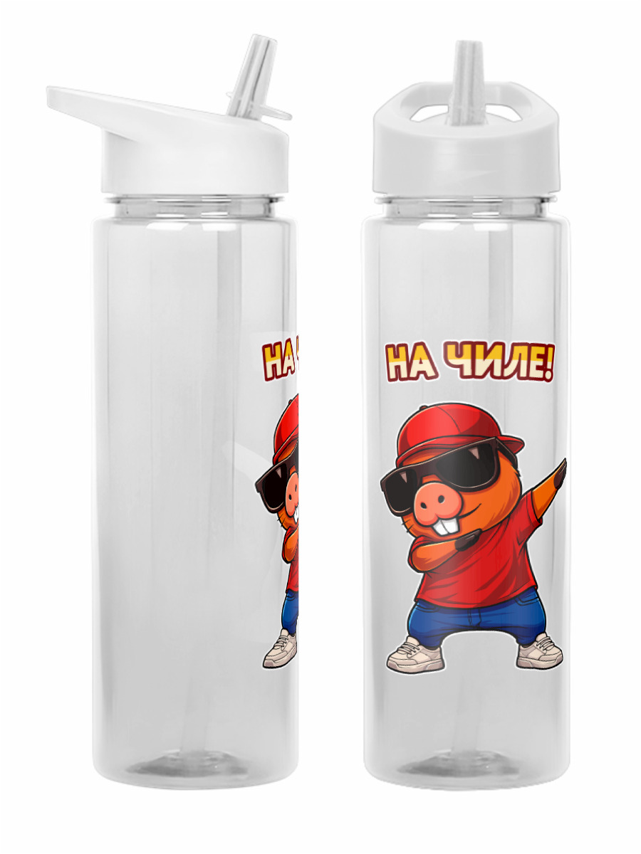 Бутылка спортивная «На чиле! Капибара танцует и отдыхает (надпись)»