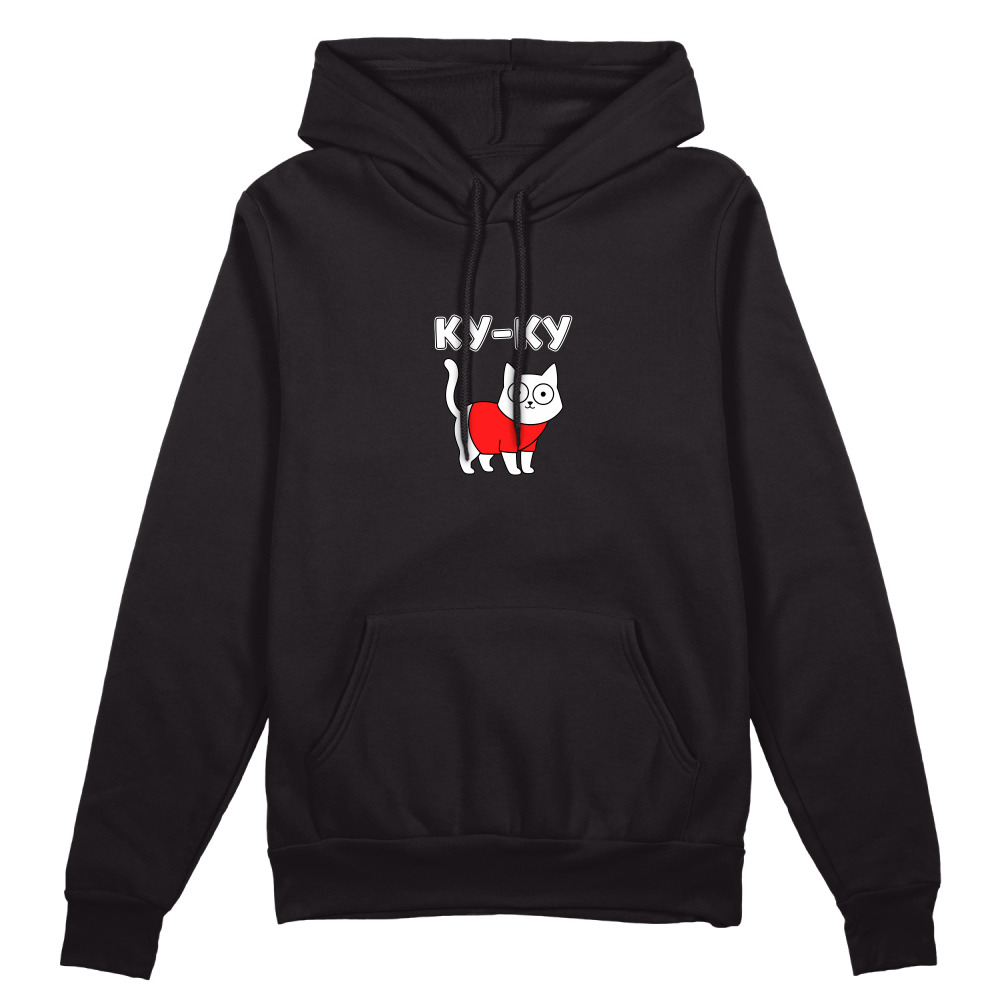 Мужская толстовка «Кот мем в футболке-ку ку! (надпись, приколы)»