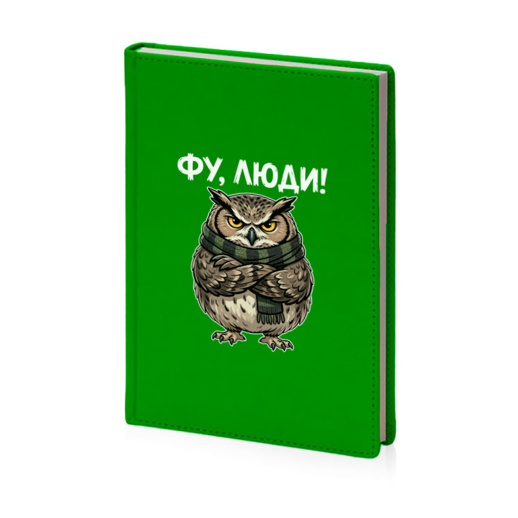 Ежедневник «Фу, люди! Недовольная сова в шарфе (надпись)»