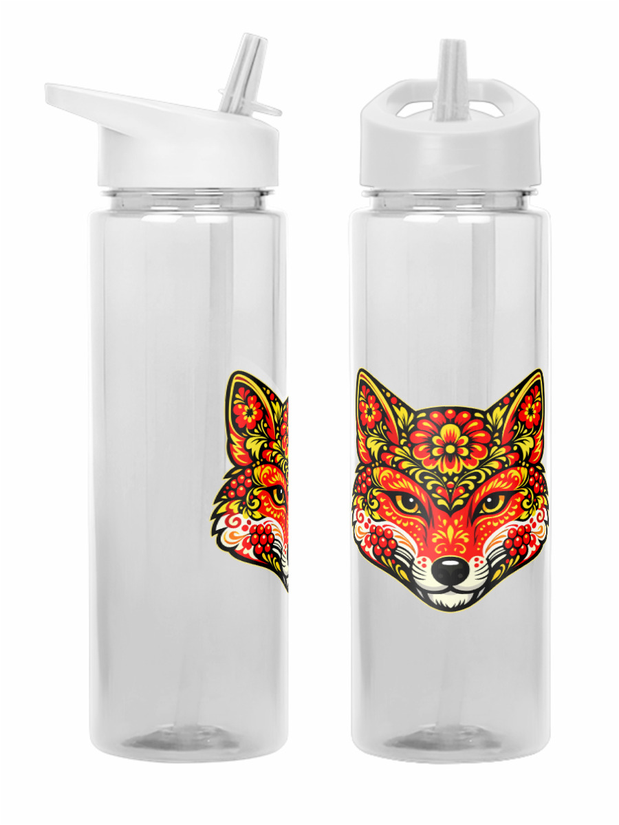 Бутылка спортивная «Русский узор хохлома-лиса в хохломской росписи»